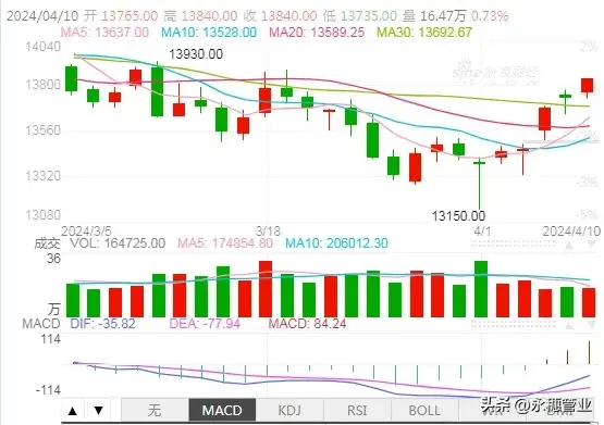 在清明假期中,倫鎳上漲幅度沖接近800,節(jié)后的第一日開盤維持節(jié)前上漲的節(jié)奏,雖然在午后都回跌,但尾盤收盤回歸上漲,整體上保持上漲。