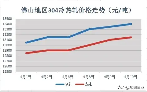 本周304無論是在冷軋還是熱軋漲幅都相對高,冷軋累漲:350,熱軋累漲:300。