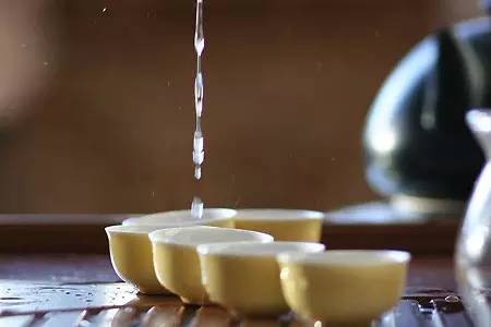 到人家跟前說聲請喝茶,對方回以莫拘禮、莫客氣、謝謝。如果是較多人的場合,杯不便收回,放在各人面前桌上。在第一次斟茶時,要先尊老后卑幼,第二遍時就可按序斟上去。